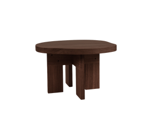 The Farmhouse Side Table Pond in dark oak is a uniquely sculptural and organic pond-shaped table design featuring a rich, deep finish and sleek aesthetic. Crafted in high-quality solid oak, supported by trestles, and inspired by traditional farmhouses with a rural aesthetic, the low wooden table serves as a side furnishing for the living room or bedroom.