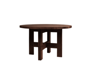 The Farmhouse Trestle Table Round in dark oak features a rich, deep tone. Crafted in high-quality solid oak, supported by trestles, and inspired by traditional farmhouses with a rural aesthetic. This wooden dining table serves as a focal point in any living space, kitchen, or dining room.