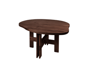 The Farmhouse Trestle Table Pond in dark oak is a uniquely sculptural and organic pond-shaped table design featuring a rich, deep finish and sleek aesthetic. Crafted in high-quality solid oak, supported by trestles, and inspired by traditional farmhouses with a rural aesthetic, the wooden dining table serves as a focal point in any living space, kitchen, or dining room.