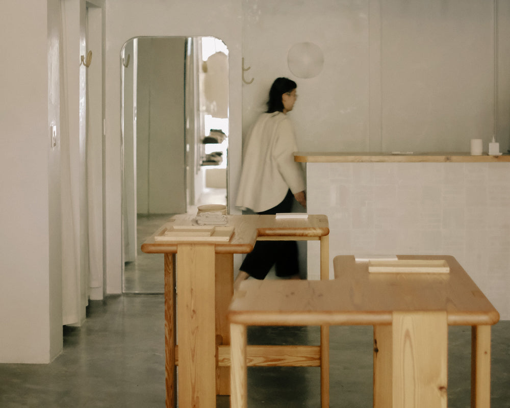 St. Pauls, FRAMA's signature fragrance and the Apothecary Collection's first scent, is a complex yet delicate essence. With an earthy formulation and distinctive freshness, it embodies the epitome of FRAMA. Wooden cabinets and tinted glass. Where past and present seamlessly intertwine.