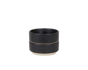 The Otto Ceramic Bowls are made in Europe by ceramicists using delicate, custom glazes. Stackable and composed of timeless shapes, this set contains two small stoneware bowls with a matte black glaze.
